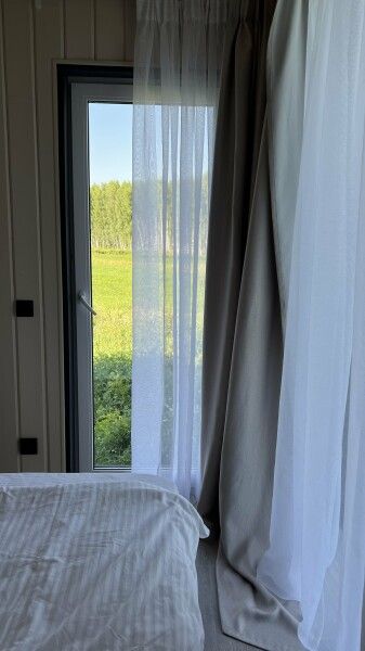 В спокойном интерьере вы найдете все необходимое для комфортного проживания: две изолированные спальни с двуспальными кроватями, просторная кухня-гостиная с раскладным диваном и большим телевизором, санузел с душевой кабиной, а также собственная сауна и зона барбекю с мангалом и очагом.