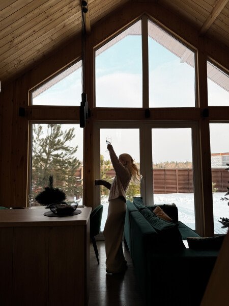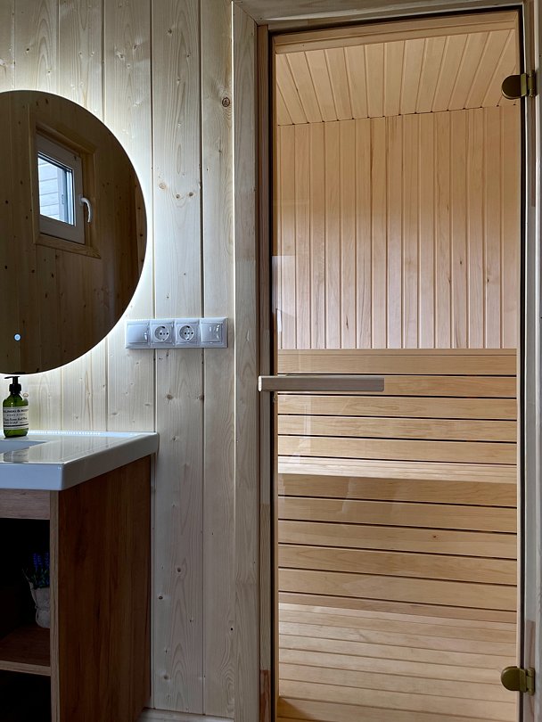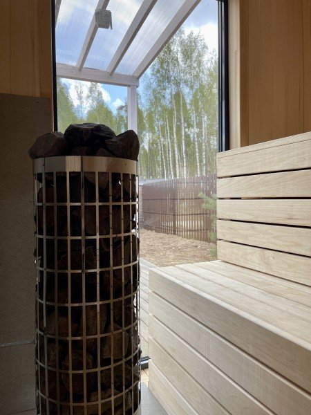 Гости могут насладиться комфортом финской сауны с панорамным окном, расположенной прямо в доме, что сделает ваш отдых поистине незабываемым. Здесь вы сможете пообщаться с близкими и предаться приятным воспоминаниям.