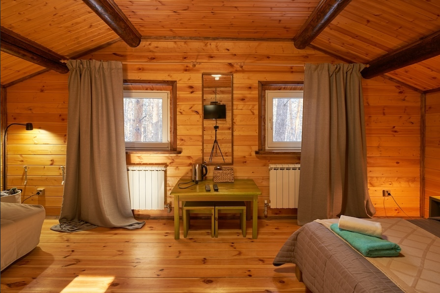 Бобровый домик – двухэтажный дом, с отдельными входами. 1 этаж двухкомнатный номер.