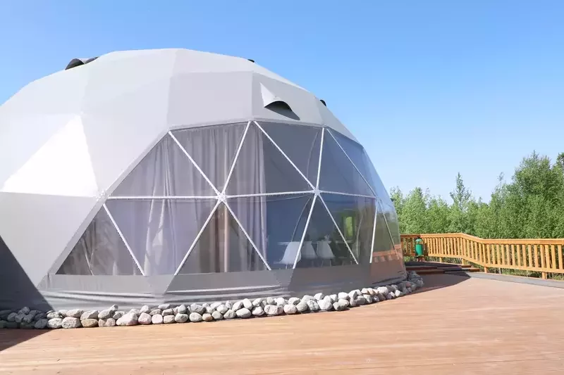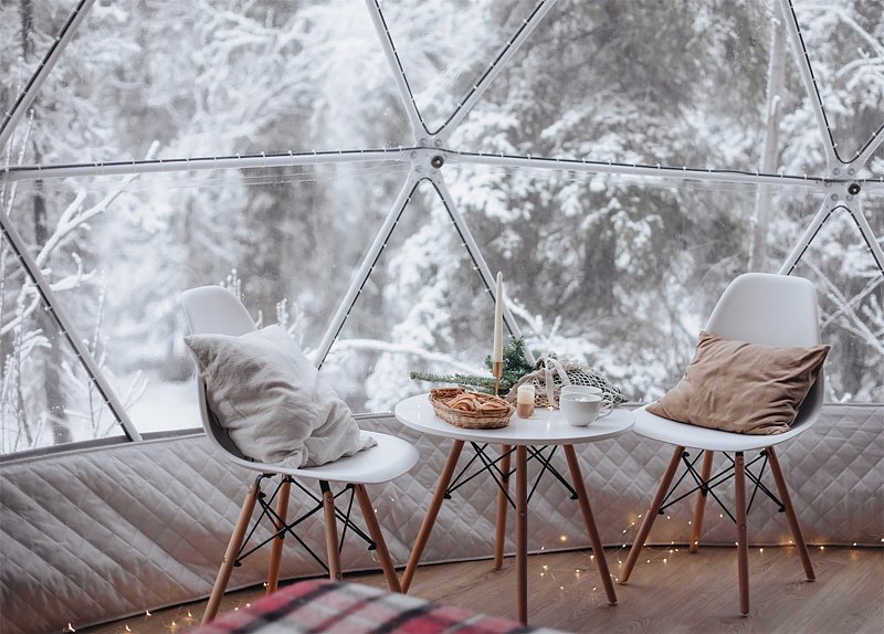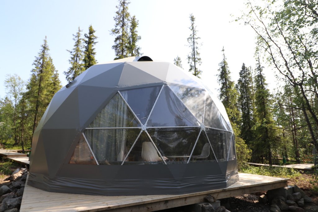 Альтернатива коттеджам — глэмпинг. Утеплённые эко–шатры с террасой, доступные для проживания в любое время года.
