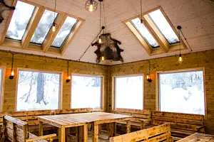 Кафе вместимостью 140 гостей, где можно провести вечер под уютное потрескивание дров в камине и полюбоваться северной природой через панорамные окна. Откройте для себя необычные и самобытные блюда северной кухни. Завтраки и обеды по заявке.