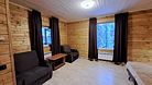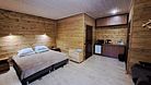 Двухэтажный коттедж с собственной сауной для комфортного отдыха большой семьёй или дружеской компанией. Первый этаж каждого коттеджа разделён на кухонную зону и зону сауны, второй этаж отведён под три отдельные спальные комнаты.