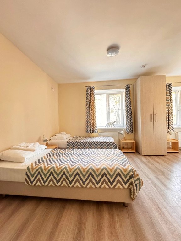 Три односпальные кровати, одна двуспальная кровать, одно раскладное креслоУслуги и удобства