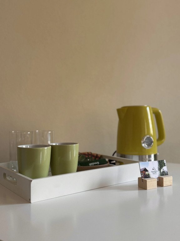 - мини кухня (чайник, микроволновка, посуда, столовые приборы);