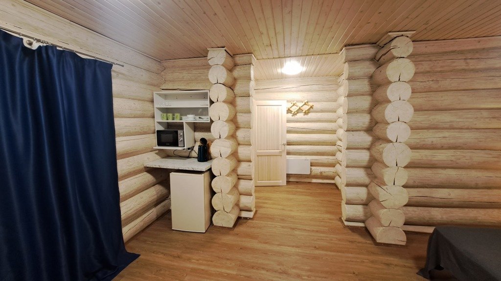 Коттедж построен из экологически чистого материала, хорошо отапливается, есть горячее водоснабжение. В доме есть ванная комната с душем и бесплатными туалетно-косметическими принадлежностями. Площадь 36 м2, рассчитан на комфортное размещение до 4 человек.
