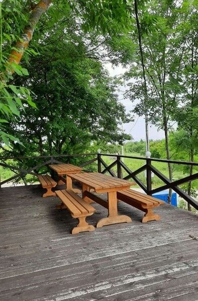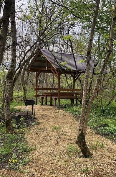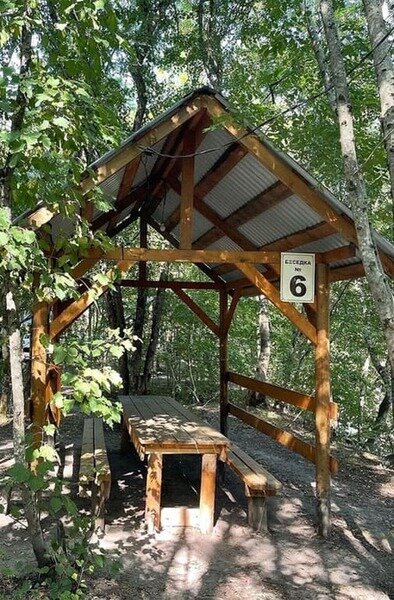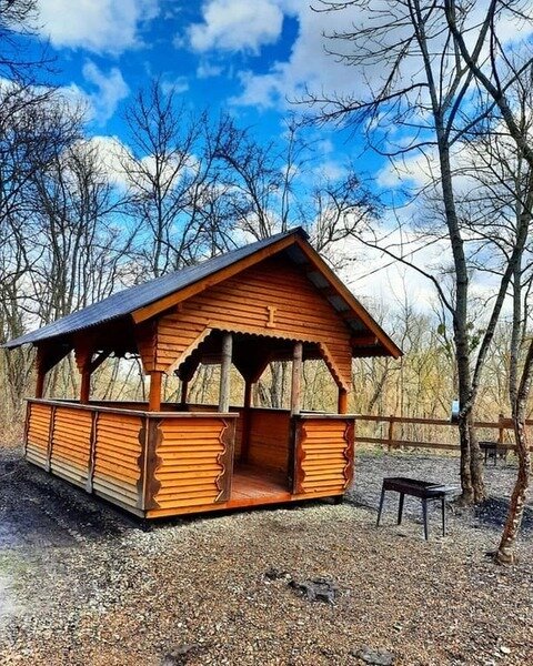 На территории, в живописном лесном массиве у реки, расположены уютные беседки. Каждая из них оборудована собственным мангалом, умывальником, электричеством и парковочным местом. Для общего пользования гостей предусмотрен холодильник.