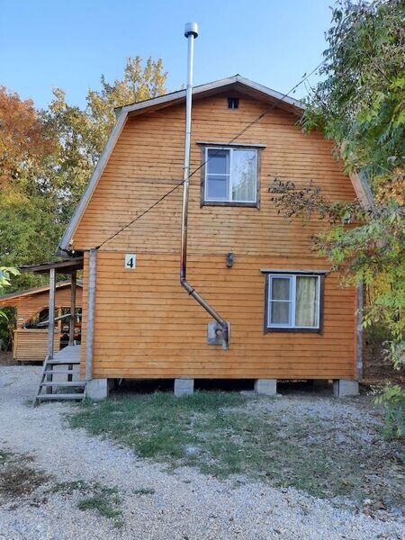 Двухэтажный дом на 12 человек. В доме с/у, оборудованная кухня и спальни с двуспальными кроватями.