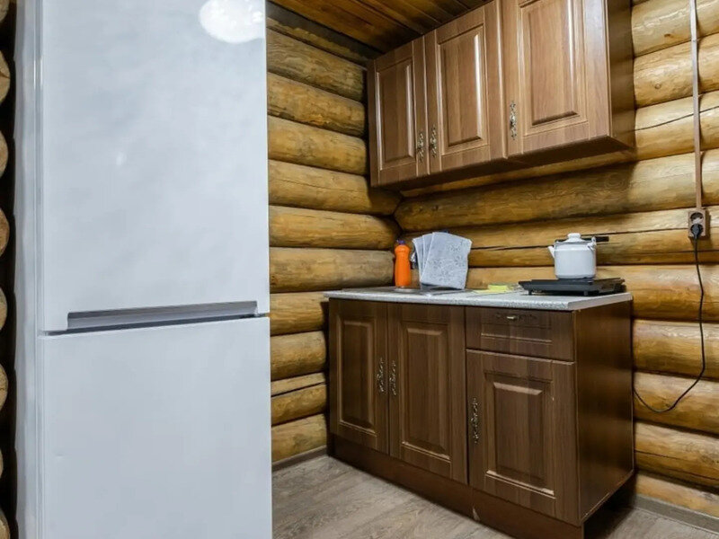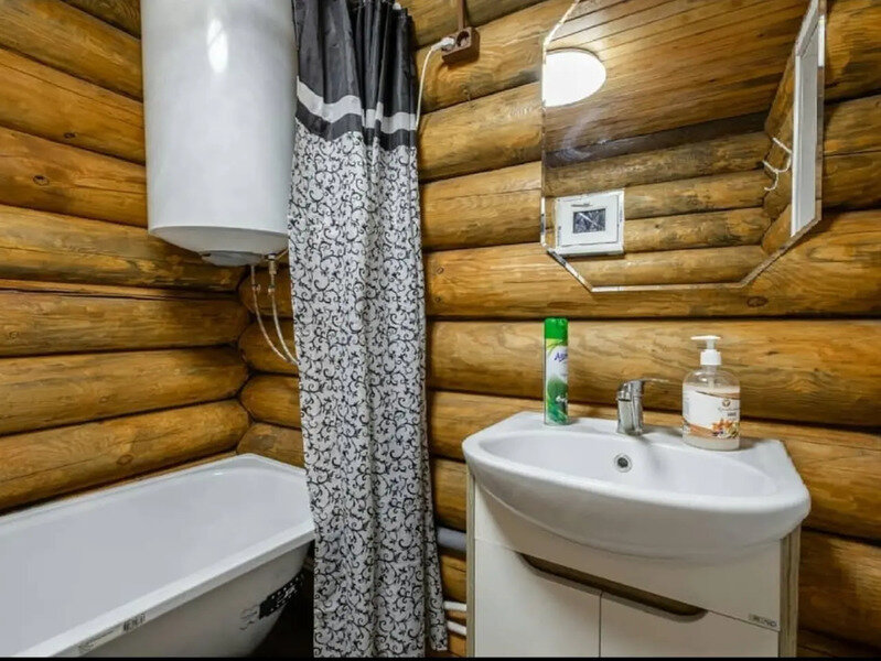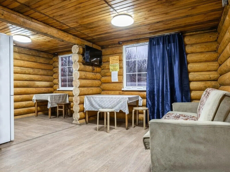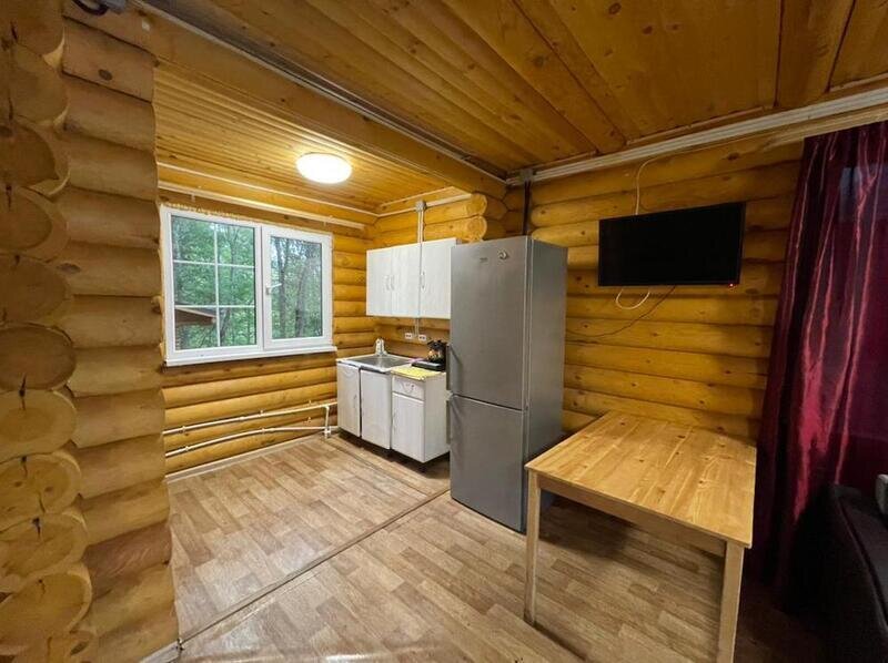 В доме: кухня, полноценная ванная с горячей водой, холодильник, газовая плита, чайник, необходимый набор посуды, постельное белье, телевизор, спутниковое ТВ, сплит система, а в зимний период для отопления используются сибирские печи «Термофор» на дровах. К каждому домику идёт отдельная беседка с мангалом.