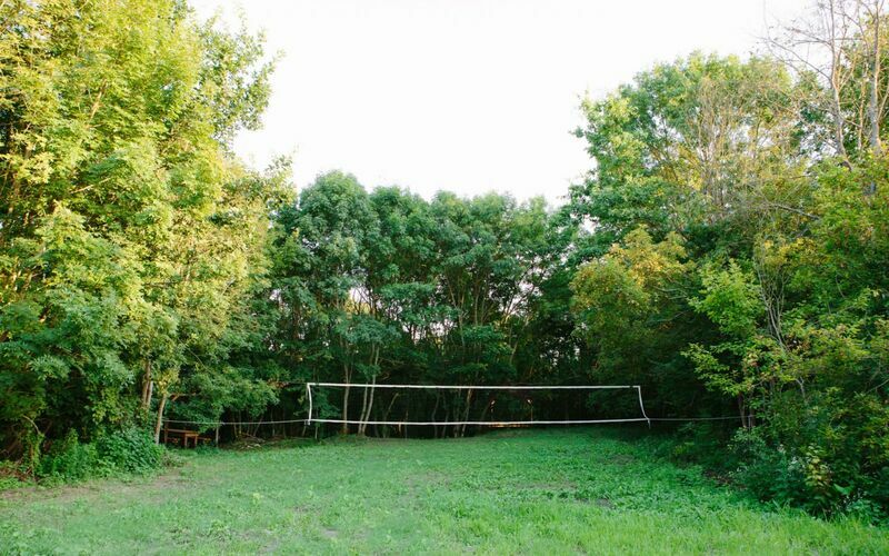 Для любителей загородного отдыха на природе предлагаем 10 полян для палаточного лагеря или отдельные беседки с палатками. Предоставляется мангал, дрова, электричество, вода, душ, туалет, возможность посещения бани. Для детей есть игровые и спортивные площадки.