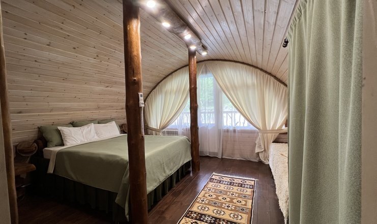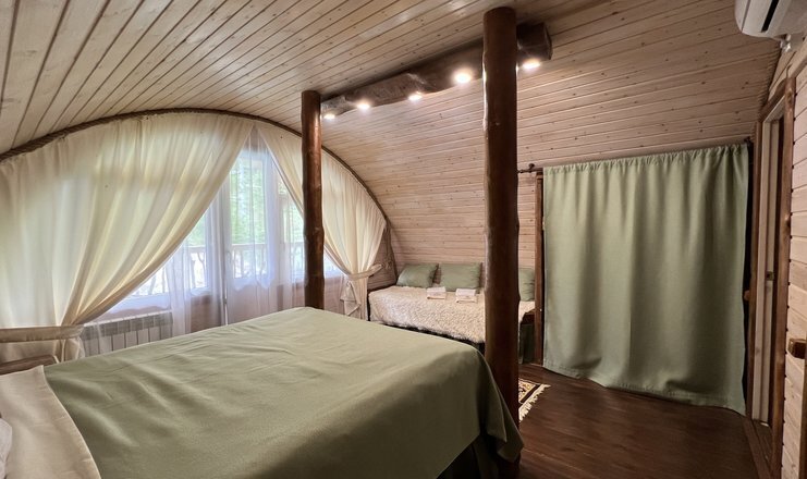 Эко-отель "Место силы" - уникальное место для отдыха, построенное из экологически чистой кедровой древесины, без использования химических веществ. Здесь вы сможете восстановить свои жизненные силы и энергию в мощном энергетическом пространстве. Все элементы природы - огонь, вода, воздух и земля - соединены на территории этого отеля, создавая гармонию и спокойствие. Отель расположен в живописном уголке природы, рядом с горной рекой и водопадом "Пасть Дракона" в ущелье Ахцу.