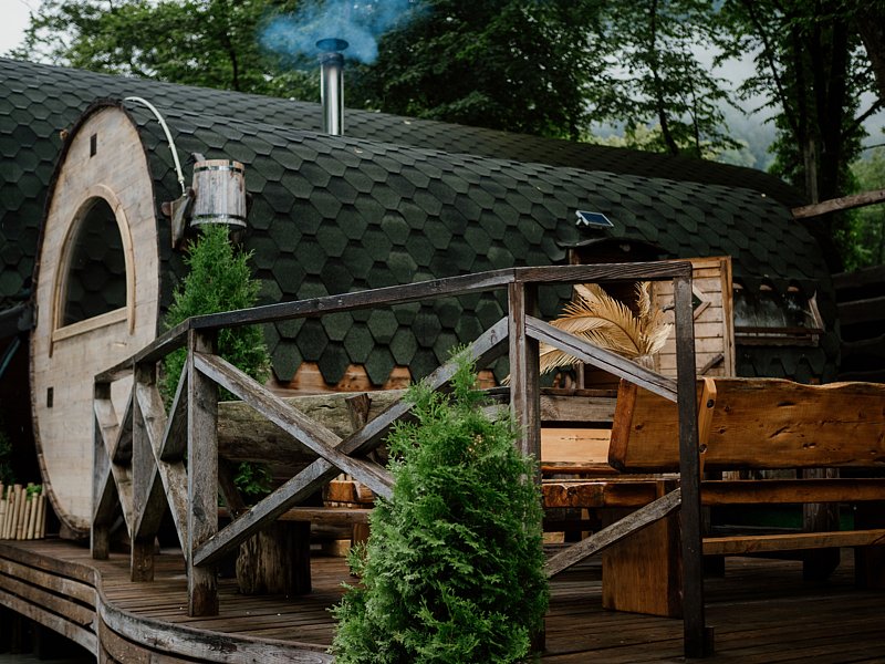 - баня-бочка из кедра с зоной отдыха;