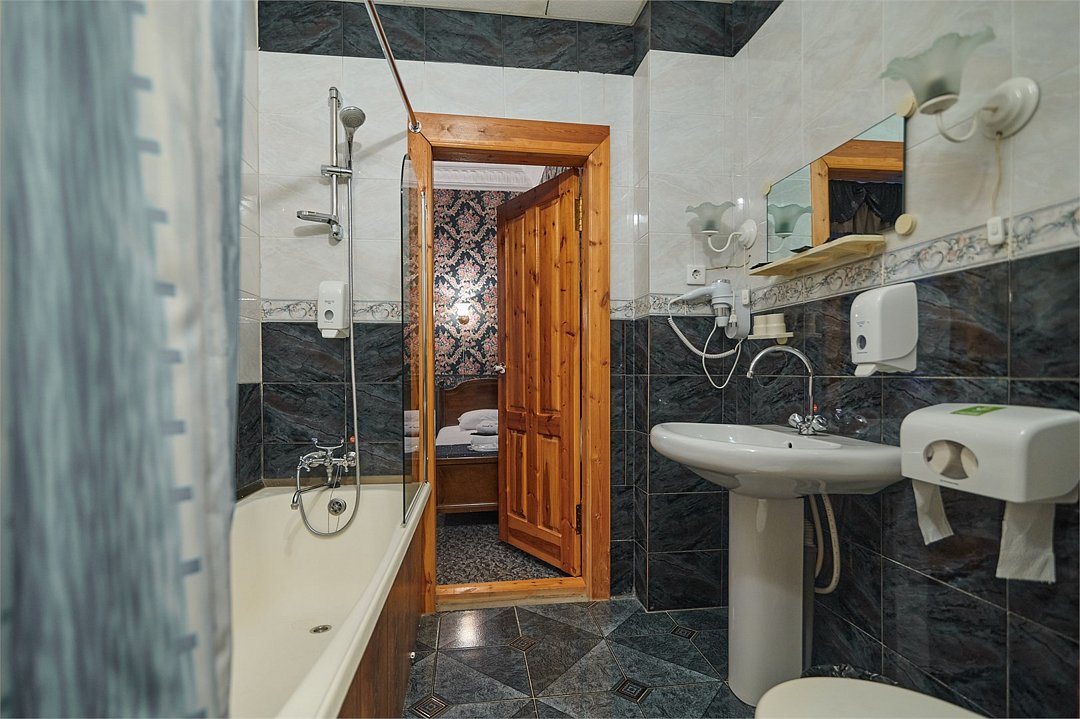 Когда советский народ смотрел щурясь на небо, пытаясь разглядеть ракету с первым космонавтом, в нашу гостиницу прилетал Юрий Алексеевич Гагарин. Может на ракете он тогда летел именно в гостиницу Север? Мы особенно гордимся этим номером. Он уютный и просторный. А его изюминка - ванная комната — здесь всё “то самое”: та самая качественная плитка, тот самый советский фаянс. Здесь можно подумать о космической вечности. В спальне несколько ковров, приятный минималистичный дизайн, деревянная мебель и высокие окна. Две кровати, дополняющие эстетику тех времен. Про космос и бесконечность хорошо думается у нас на Севере! Подробное описание номера: - 2 односпальные кровати - Прикроватные тумбы - Ванна - Шкаф - Диван - Телевизор - Холодильник - 2 кресла - Журнальный стол - Диван - Туалетный столик с зеркалом - Сервант Дополнительные удобства: - Фен - Бесплатный Wi-Fi - Гигиенические принадлежности - Косметический набор - Чайная станциУслуги и удобства
