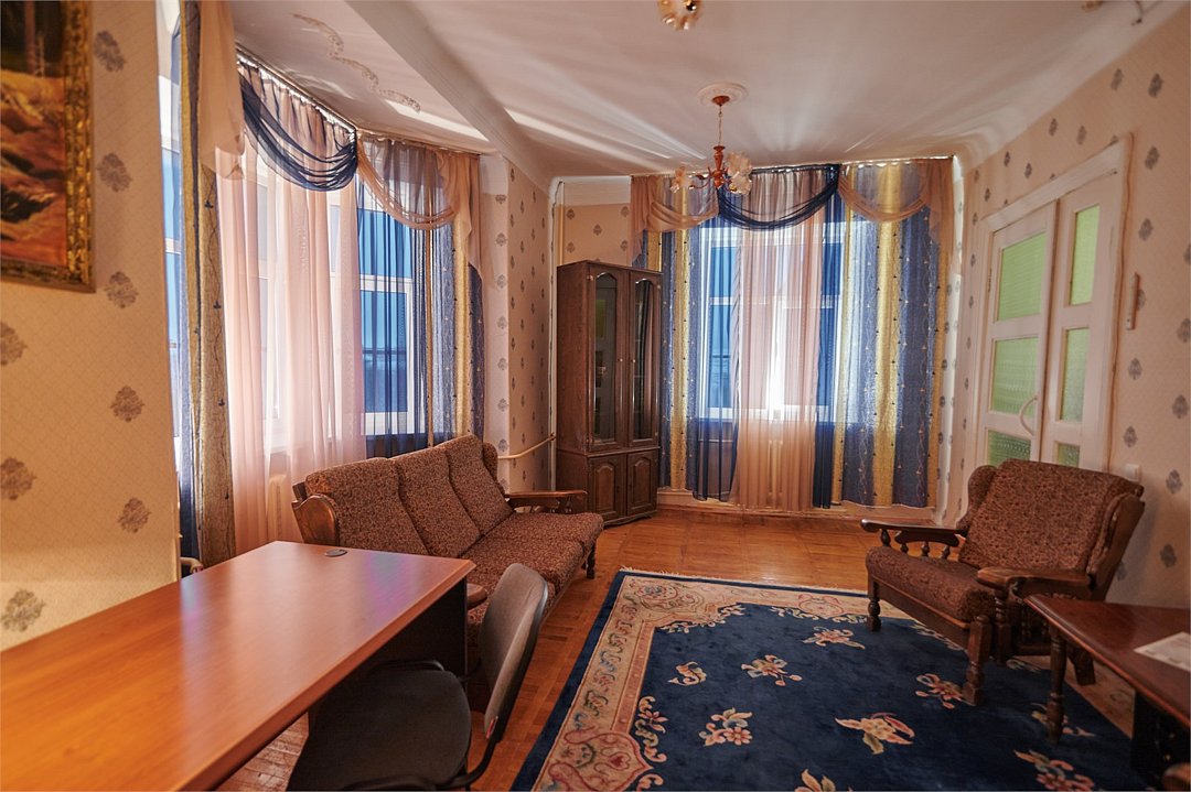Wi-Fi, холодильник, светильник, настольные лампы, фен, ванная комната, ванна, санузел, две полутораспальные кровати, диван, кресла, стулья, шкаф для одежды, вешалки, журнальный столик, письменный стол, зеркало, ковер, две комнаты, звуконепроницаемые стены и окна, чайный набор, обслуживание номеров, чайник, унитаз, раковина, мягкая мебель, питьевая вода, гостиная зона, вид на город, кресло, раздельный санузел, паркет, высокие потолки, стаканы, стул, тумба, туалетные средства, туалет, телевизор с плоским экраном, вид на горы, номер для некурящих, антикварная мебель, чайная станция, можно с питомцамиВ гостиничном номере