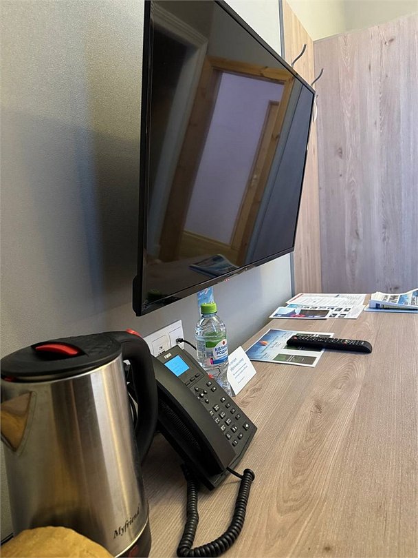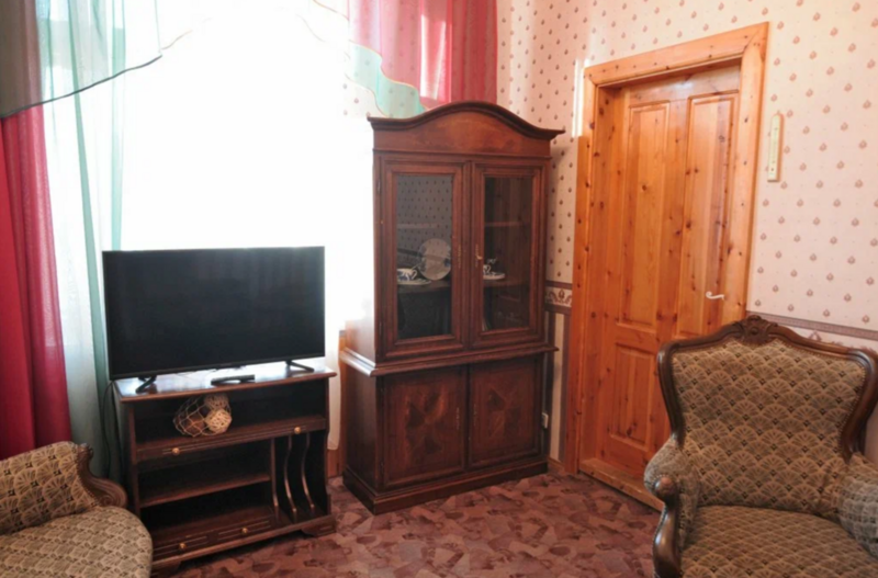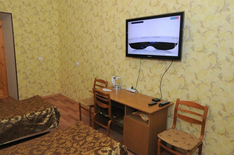 В номерах очень чисто, есть холодильник и телевизор, но телевизор мы не смотрели поэтому не могу сказать какие каналы там работали. Есть две общие кухни, можно приготовить себе завтрак и ужин, а обедали мы в городе.