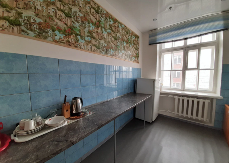 Достаточно большая кухня со всеми удобствами и посудой, можно готовить самостоятельно. -