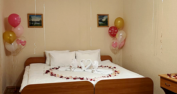 Дорогие гости, если Вы отмечаете такое важное событие, как свадьба, отель поможет Вам расслабиться под конец утомляющего праздника в специально подготовленном номере.