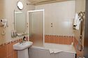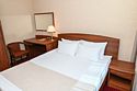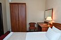 Насчет номеров. Вполне хорошие номера, во всех имеется минимальный набор самого необходимого. Чисто и убрано. Мы брали номер Стандарт+ с двухместной кроватью, неплохо. По оснащению у нас был телевизор, телефон, Wi-Fi, мини холодильник, сейф, все для чая, ну и водичка. В принципе, хороший нужный базовый набор. Также позаботились и предоставили тапочки, фен, ну и разные там шампуни, гель для душа - косметические принадлежности в общем. Душевая кабине тоже цивильная. Мебель в номере комфортная, особенно кровать - а как иначе, ради нее ведь и брали этот номер.