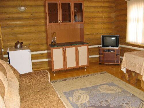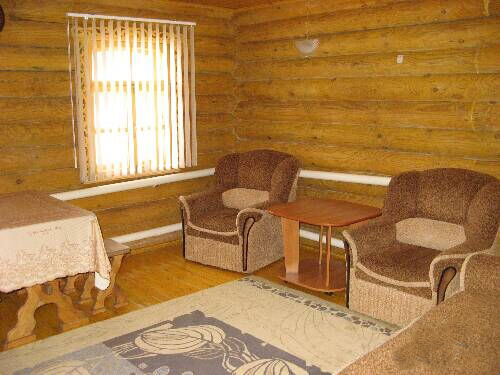 Стандартные деревянные дома (срубы),отапливаемые, со всеми удобствами: гостиная, спальня, прихожая.