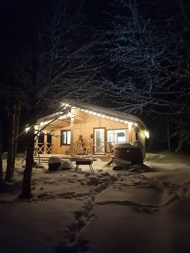 Полноценный одноэтажный комфортабельный дом, расположенный в 15 метрах от воды. С двумя спальнями. В одной двух-местная кровать с видом на озеро. В другой спальне двухьярусная кровать и односпальная вид на улицу. На первом этаже кухня-гостиная с панорамным окном, камином, столом со стульями и раскладным диваном. Также,есть душевая с туалетом, горячая и холодная вода. Большая терраса с видом на озеро оборудована уличной мебелью.
