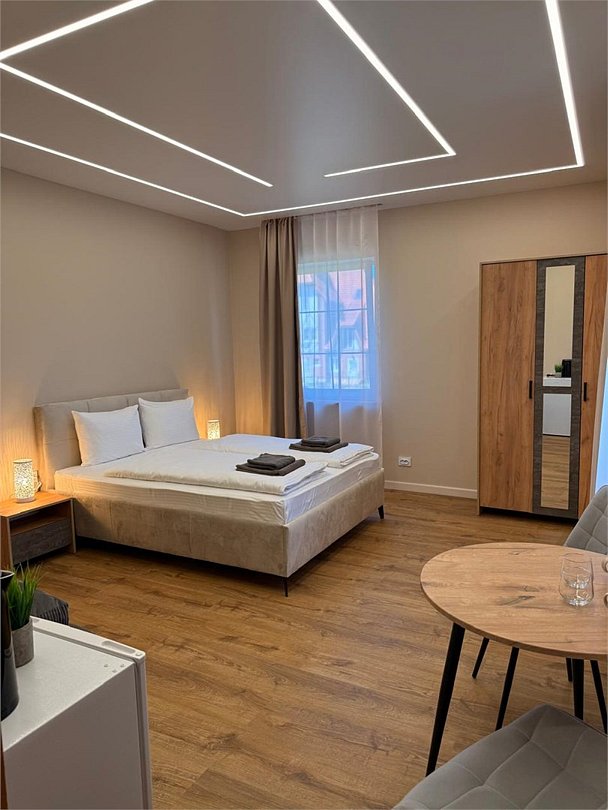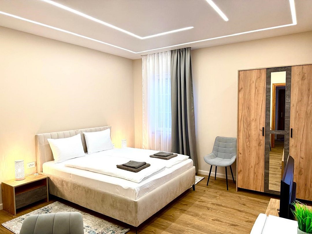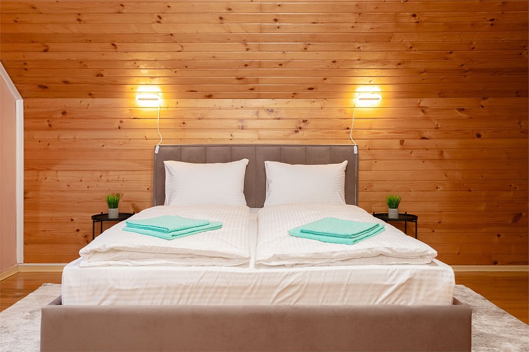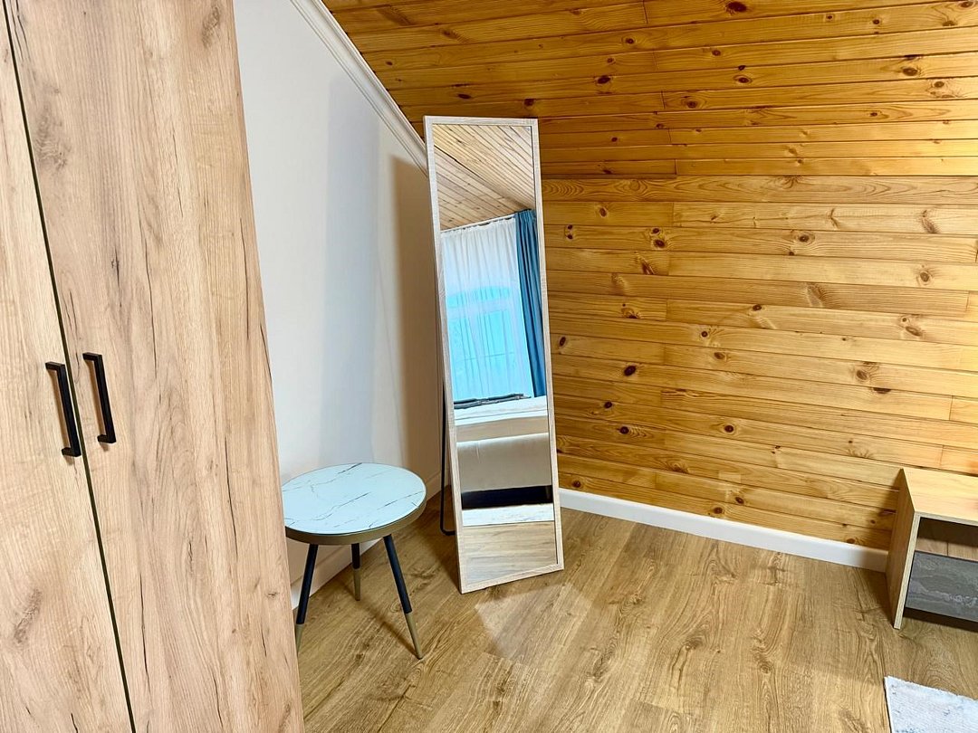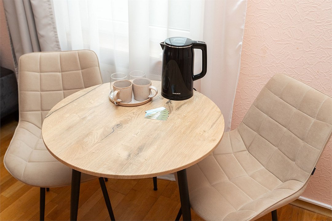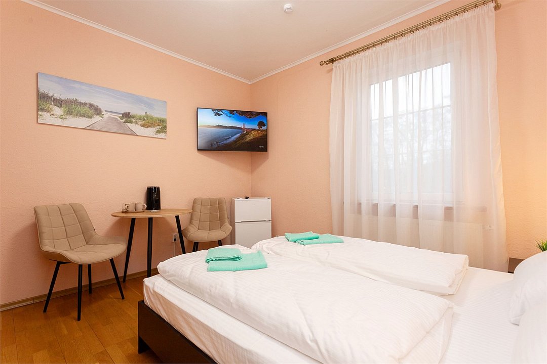 Однокомнатный номер оснащен всем необходимым для комфортного размещения гостей: удобной двуспальной кроватью 200*160 с ортопедическим матрасом, функциональной мебелью для хранения личных вещей и багажа, включая просторный шкаф и прикроватные тумбочки. В номере также предусмотрена ванная комната с душевой кабиной, феном и набором туалетных принадлежностей. Гости могут воспользоваться бесплатным Wi-Fi, телевизором. Для удобства имеется мини-холодильник и электрический чайник с набором для приготовления чая и кофе. Предусмотрена уборка номера и смена полотенец. По запросу предоставляются дополнительные услуги, такие как гладильные услуги, питание: завтра, обед и ужин. Номер идеально подходит для индивидуальных путешественников или пар, желающих насладиться комфортным и беззаботным отдыхом.Услуги и удобства
