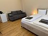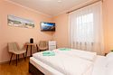 Просторный улучшенный номер с новым ремонтом. Оснащен двуспальной кроватью 200*160 с ортопедическим матрасом, раскладным диваном и предназначен для размещения 4-х гостей с возможностью дополнительного предоставления комфортной раскладной кровати в количестве 1 шт. за доп. плату. В номере также предусмотрена ванная комната с душевой кабиной, и набором туалетных принадлежностей. Гости могут воспользоваться бесплатным Wi-Fi, телевизором. Для удобства имеется мини-холодильник и электрический чайник с набором для приготовления чая и кофе. Просторный шкаф для хранения вещей и прикроватные тумбочки. Предусмотрена уборка номера и смена полотенец. По запросу предоставляются дополнительные услуги, такие как гладильные услуги, питание: завтрак, обед и ужин. Номер идеально подходит для путешествий с семьей.Услуги и удобства