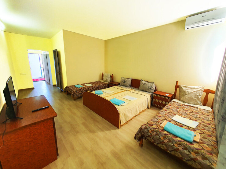 Номерной фонд составлен так, чтобы каждый гость смог подобрать отличный вариант. Для размещения Вы сможете подобрать как двухместные номера, так и четырехместное, что позволит отдохнуть семьей или вместе с друзьями. Удобства для каждой категории собственные, поэтому не придется по утрам стоять в очереди. Каждый номер располагает кондиционером, ванной комнатой и балконной зоной с видом на море.
