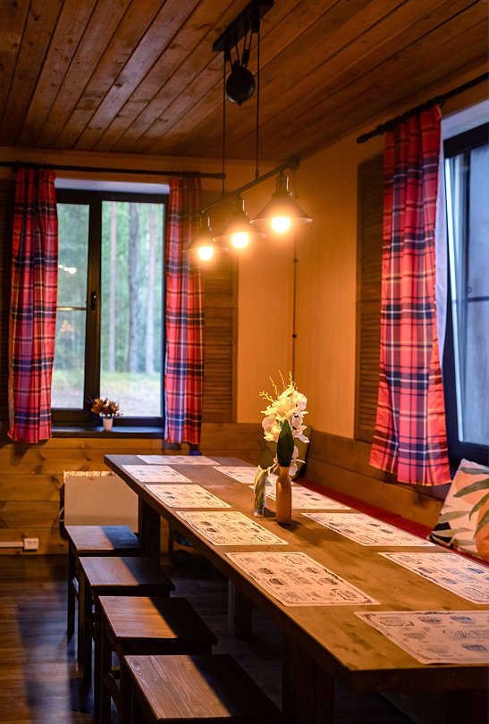 Для проживания гостей предлагаются уникальные дома в разных стилях. В каждом доме есть всё необходимое для комфортного проживания, от полного комплекта посуды до оборудованной ванной комнаты.