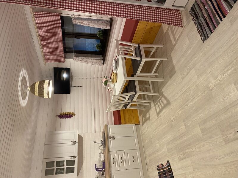 - уютная кухня-гостиная (TV, обеденный стол, холодильник, микроволновка, газовая плита, набор посуды);
