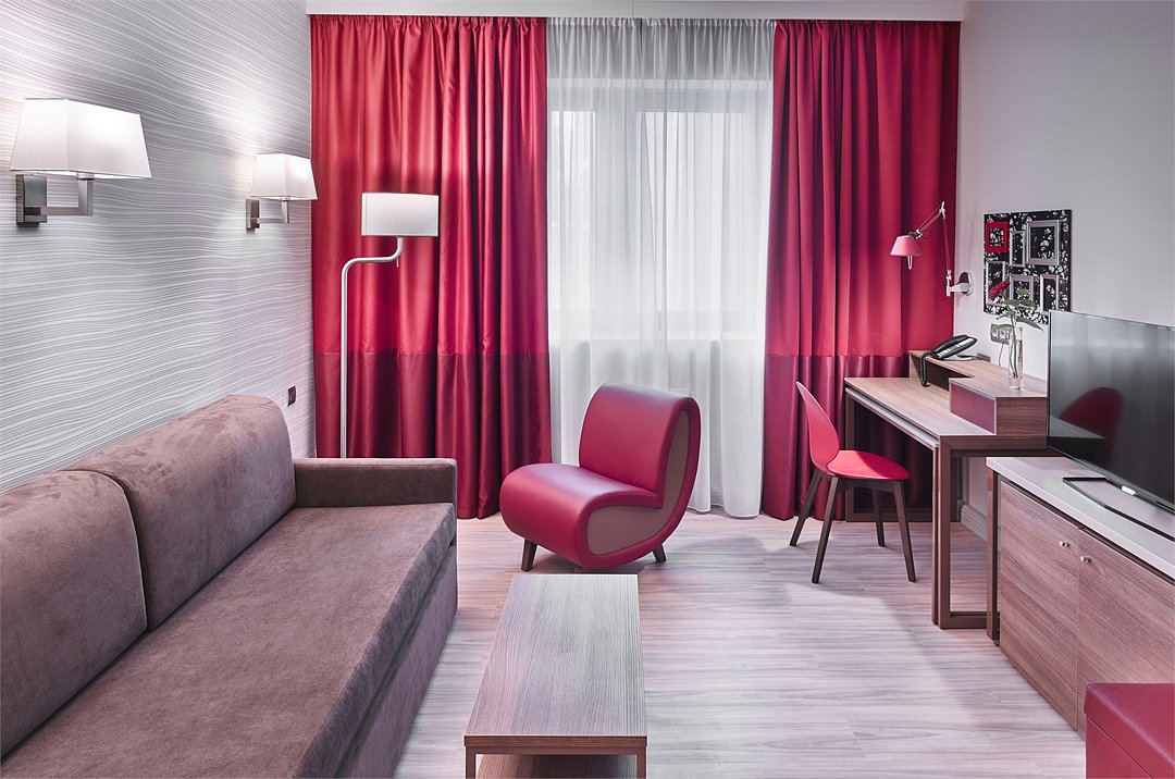 телевизор, Wi-Fi, телефон, холодильник, фен, электронные замки, плита для приготовления пищи, кофемашина, микроволновая печь, утюг, ванная комната, банные принадлежности, халаты, банные полотенца, тапочки, гигиенические средства, косметические средства, две полутораспальные кровати, диван, шкаф для одежды, вешалки, багажная тумба, зеркало, кухня, чайный набор, набор посуды, обслуживание номеров, сейф, посудомоечная машина, чайник, унитаз, раковина, питьевая вода, гостиная зона, душ, вид на город, центральное кондиционирование, вид во двор, окна выходят в атриум отеля, кухонная посуда, стаканы, кухонная утварь, столовые приборы, кофейный столик, стул, стол, туалетные средства, туалет, цифровое тв, диван-кровать, раскладной диван, телевизор с плоским экраном, мини-кухня, номер для некурящих, фанкойл, USB-порт, чайная станция, уборка номера, набор для приготовления чая и кофе, услуги прачечной (платно), СПА, мыло, можно с питомцамиВ гостиничном номере