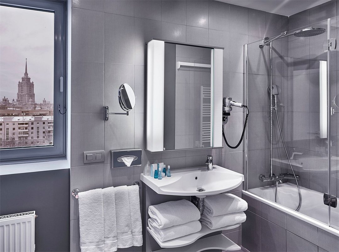 телевизор, Wi-Fi, телефон, холодильник, светильник, настольные лампы, фен, электронные замки, плита для приготовления пищи, кофемашина, микроволновая печь, утюг, душевая кабина, банные принадлежности, халаты, банные полотенца, тапочки, гигиенические средства, двуспальная кровать, шкаф для одежды, вешалки, багажная тумба, зеркало, кухня, чайный набор, набор посуды, обслуживание номеров, сейф, минеральная вода, посудомоечная машина, чайник, раковина, питьевая вода, душ, вид на город, окна выходят в атриум отеля, кухонная посуда, стаканы, кухонная утварь, столовые приборы, стул, стол, туалетные средства, туалет, цифровое тв, внутренний телефон, телевизор с плоским экраном, мини-кухня, кухонный уголок, номер для некурящих, фанкойл, USB-порт, чайная станция, набор для приготовления чая и кофе, услуги прачечной (платно), вешалки-плечики, СПА, мыло, прачечная (за дополнительную плату), можно с питомцамиВ гостиничном номере