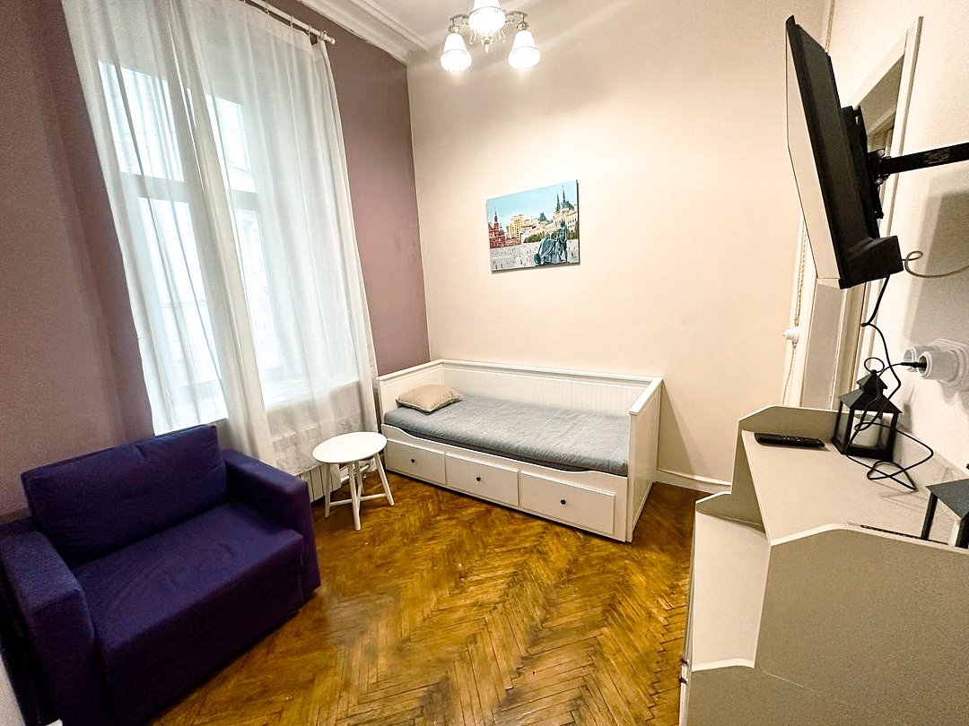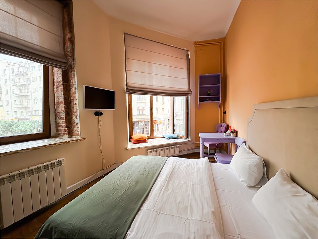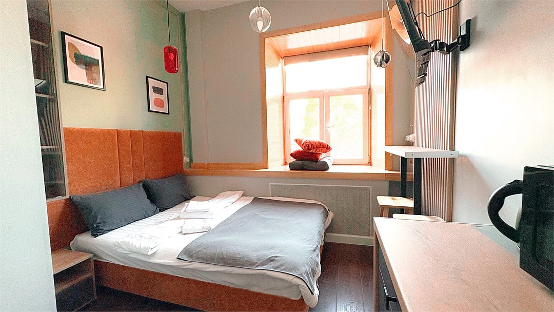 Wi-Fi, фен, микроволновая печь, кровать «Queen size», стулья, чайник, вид на город, кулер на этаже, стол, санузел на этаже, телевизор с плоским экраном, мини-холодильник, душ на этаже, без питомцевВ номере