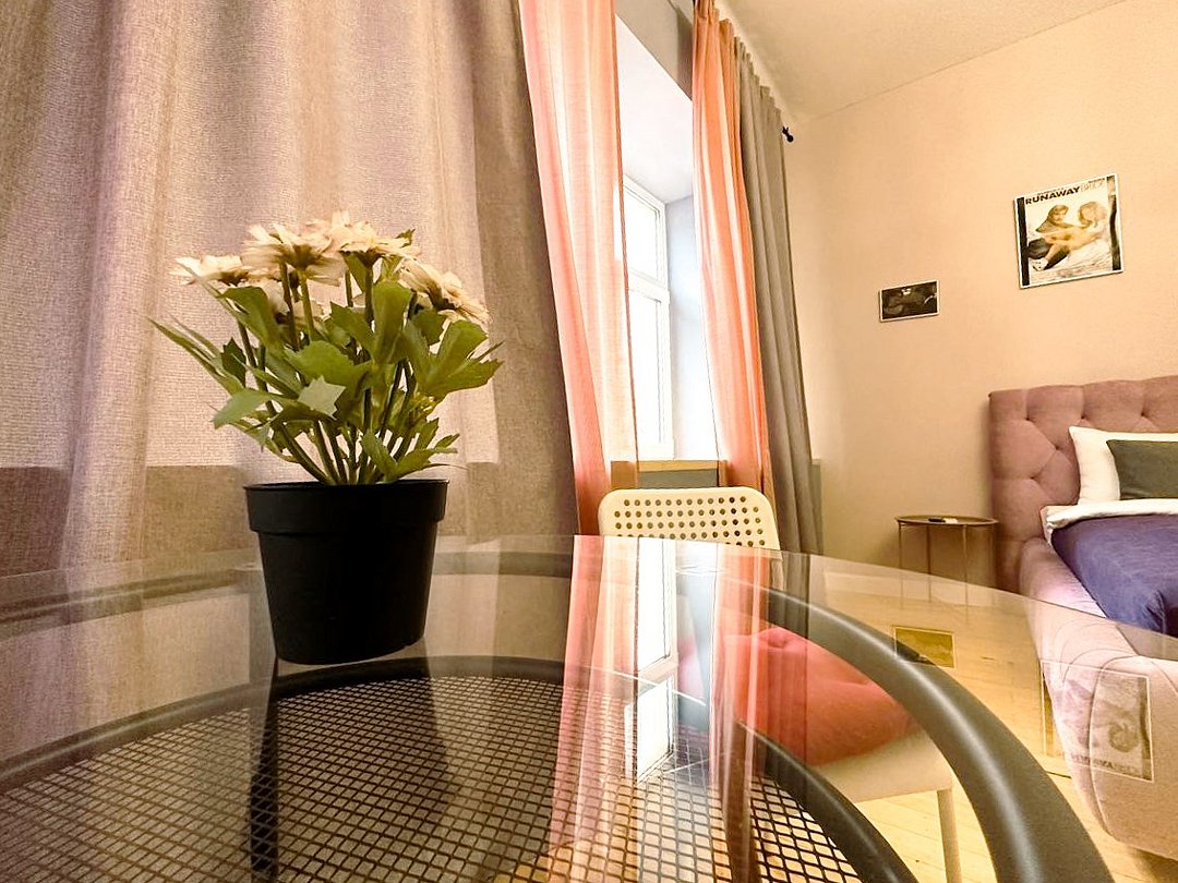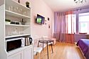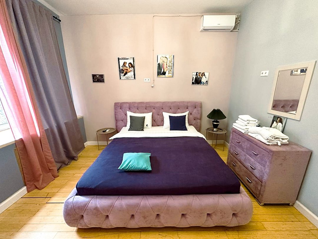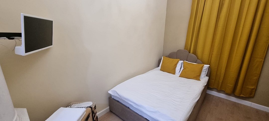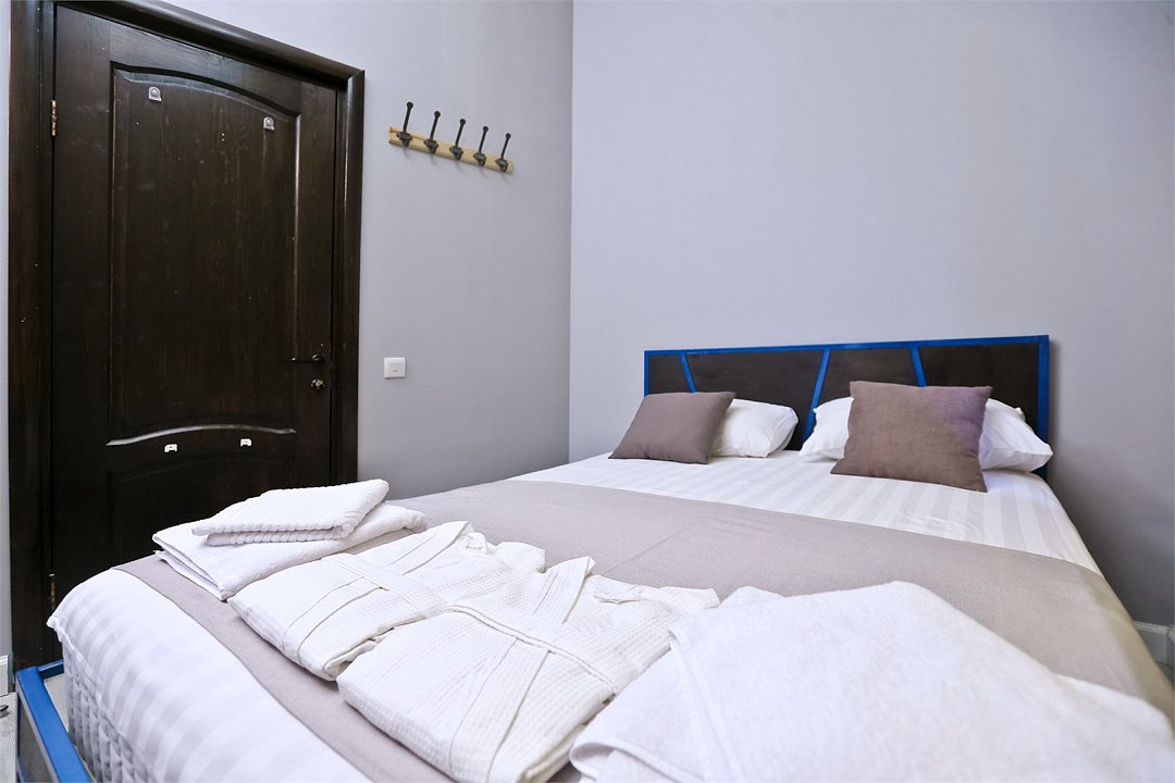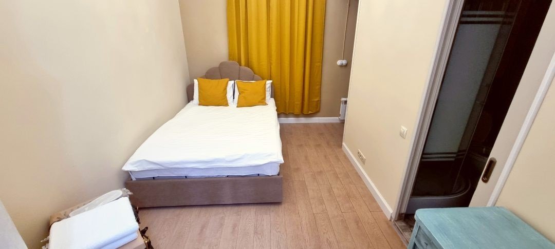 Светлая и уютная комната, выполненная в мягких тонах, дарит атмосферу расслабления. Просторное окно наполняет помещение естественным светом, создавая ощущение простора. Современное оснащение и изящный декор добавляют комфорт. Оснащение номера: • Двуспальная кровать • ЖК-телевизор • Комод • Зеркало в полный рост • Санузел с душевой кабинкой • Компактная кухня с мойкой • Микроволновая печь • Электрический чайник • Обеденная зонаУслуги и удобства