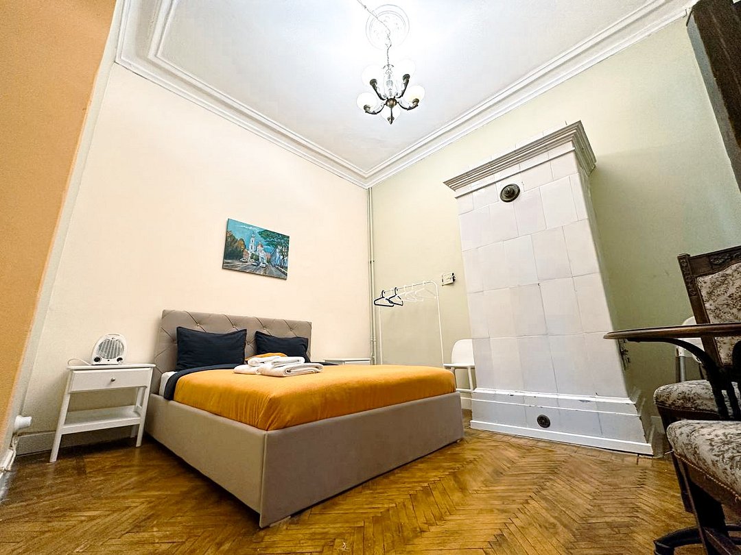 телевизор, Wi-Fi, кондиционер, фен, микроволновая печь, санузел, банные полотенца, тапочки, двуспальная кровать, тумбы, стулья, вешалки, зеркало, камин, чайник, вид на город, стаканы, кухонная утварь, стол, туалетные средства, туалет, мини-холодильник, антикварная мебель, без питомцевВ номере