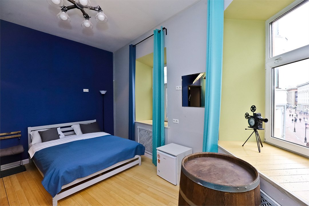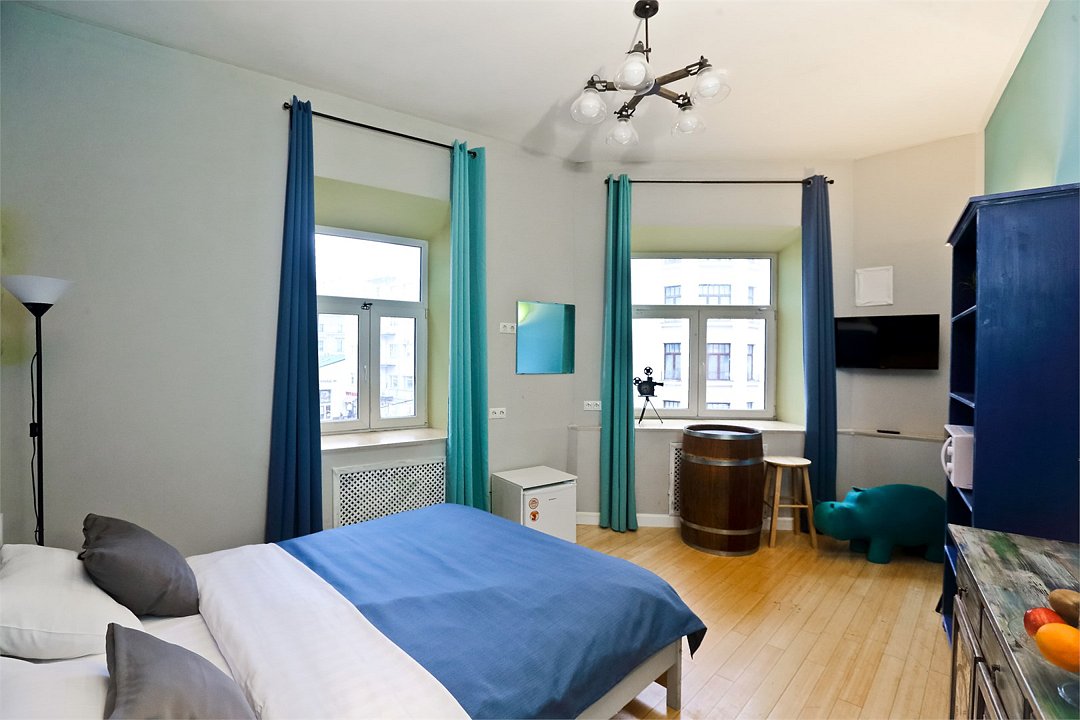 телевизор, Wi-Fi, микроволновая печь, двуспальная кровать, тумбы, стулья, комод, чайник, вид на город, кулер на этаже, стаканы, кухонная утварь, стол, санузел на этаже, мини-холодильник, душ на этаже, без питомцевВ номере