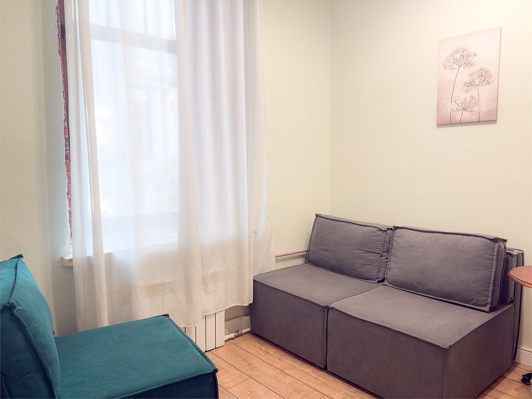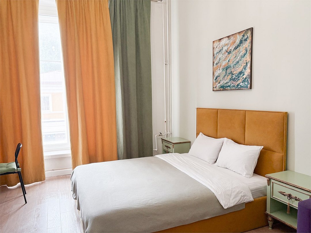 Светлая и уютная студия, выполненная в мягких тонах, дарит атмосферу расслабления. Просторное окно наполняет помещение естественным светом, создавая ощущение простора. Современное оснащение и изящный декор добавляют комфорт. Оснащение номера: • Двуспальная кровать • ЖК-телевизор • Комод • Зеркало в полный рост • Санузел с душевой кабинкой • Компактная кухня с мойкой • Микроволновая печь • Электрический чайник • Обеденная зонаУслуги и удобства