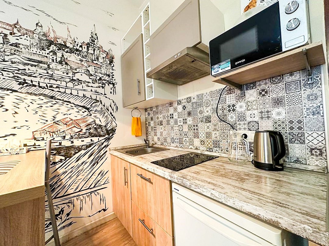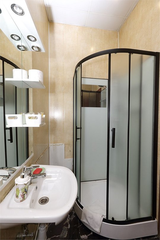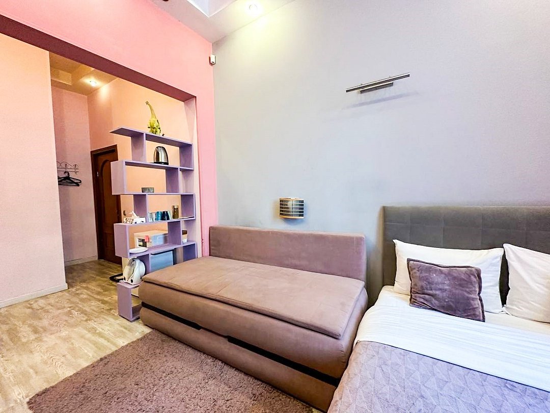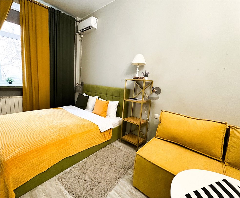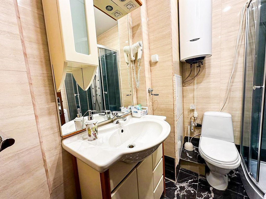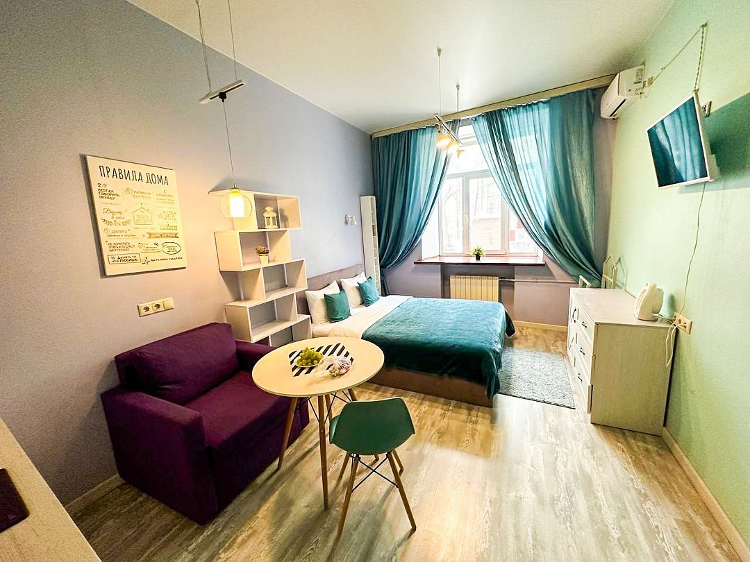 Комфортабельная студия с современным дизайном. Спальная зона оформлена в спокойных тонах. Кухня оборудована всем необходимым для приготовления еды. Ванная комната оснащена стильной душевой кабиной. Оснащение: • Двуспальная кровать • Кондиционер • Шкаф • Кухонная зона с плитой и раковиной • Микроволновая печь • Электрический чайник • Стол со стульями • Ванная комната с душевой кабиной • Тумба с раковиной и зеркалоУслуги и удобства