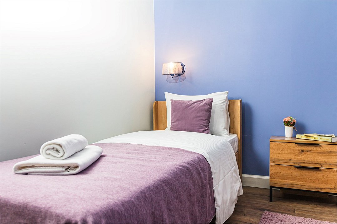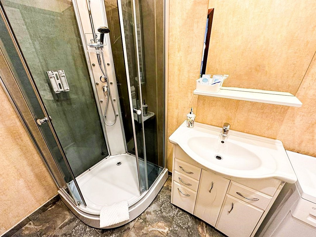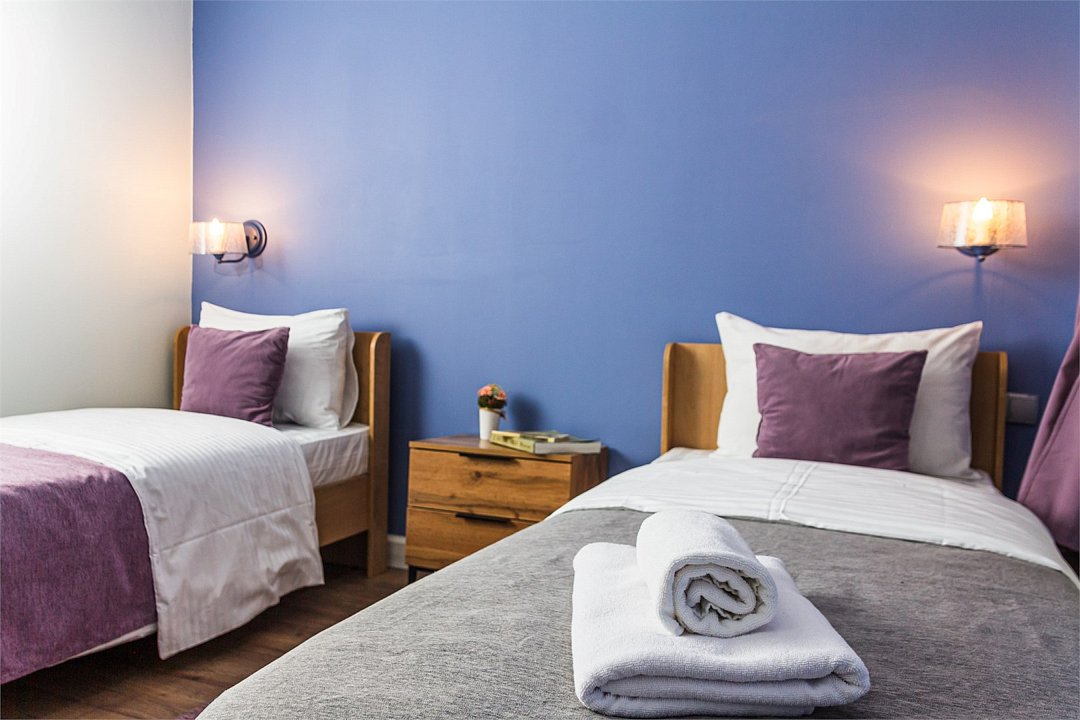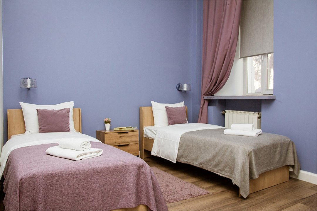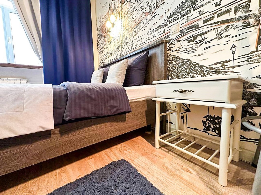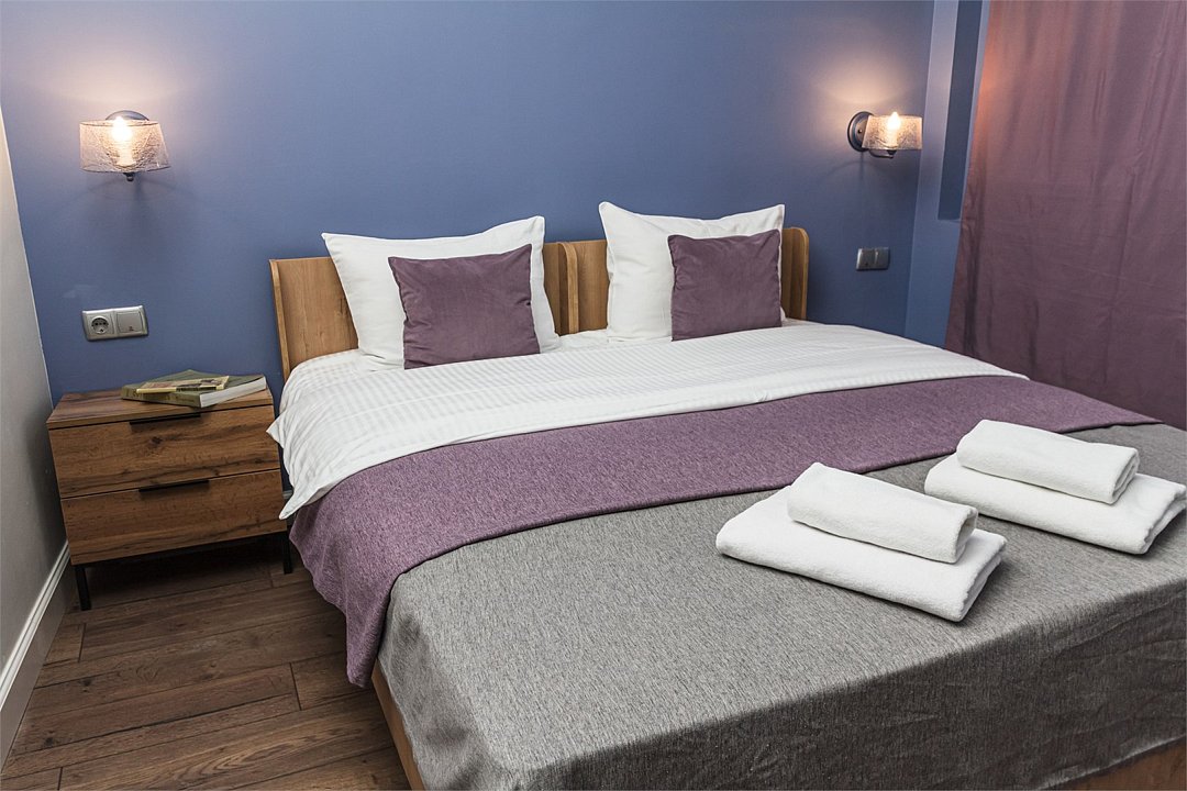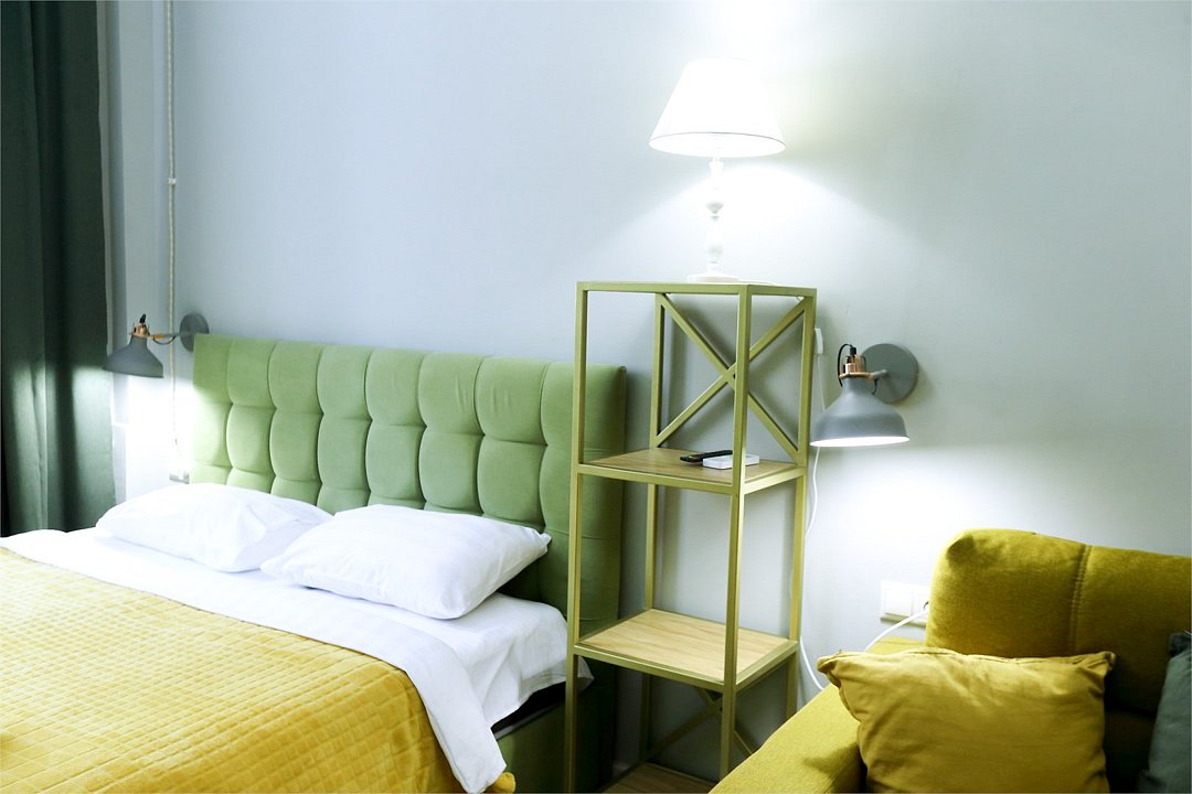 Комната оформлена в современном стиле с уютной атмосферой. Основные акценты в интерьере сделаны на спокойные тона и функциональность. Оснащение: • Двуспальная кровать или две односпальные кровати с мягкими подушками и свежим постельным бельем • Прикроватная тумба с лампами для чтения • Телевизор с настенным креплением • Мини-холодильник • Высокий стол с барным стулом • Ванная комната с душевой кабиной • Умывальник с зеркалом и необходимыми туалетными принадлежностямиУслуги и удобства