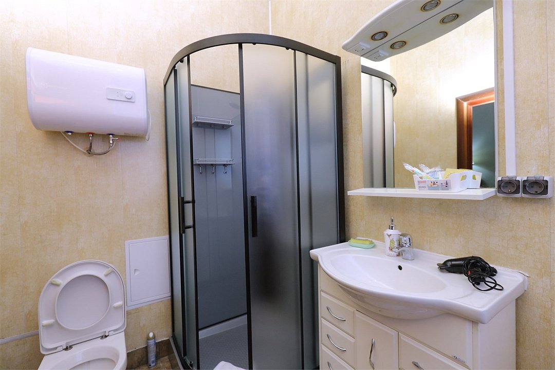 Комната со свежим интерьером. Здесь предусмотрена комфортная кровать с мягкими подушками, два удобных раскладывающихся кресла для отдыха и стол для деловых или гастрономических нужд. Ванная комната оснащена современной душевой кабиной. Идеально подходит для спокойного отдыха или продуктивной работы. Оснащение: • Двуспальная кровать • Два раскладывающихся кресла • Стол и стулья • Освещение и прикроватные лампы • Ванная комната с душевой кабиной • Тумба с раковиной и зеркалоУслуги и удобства