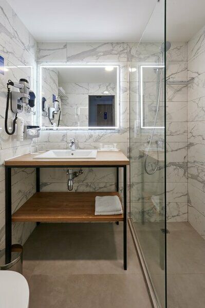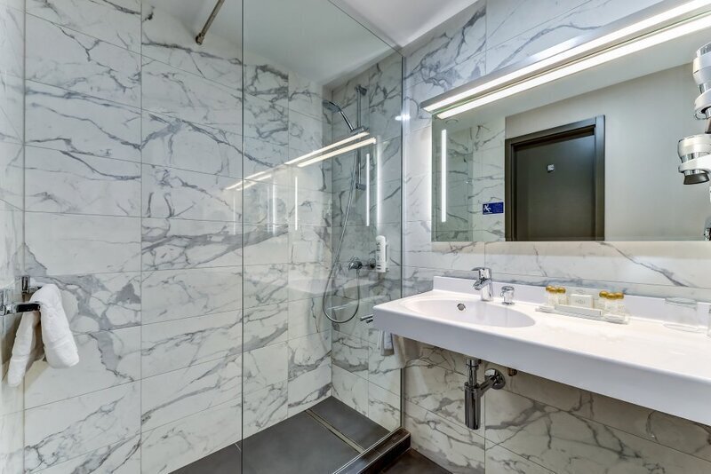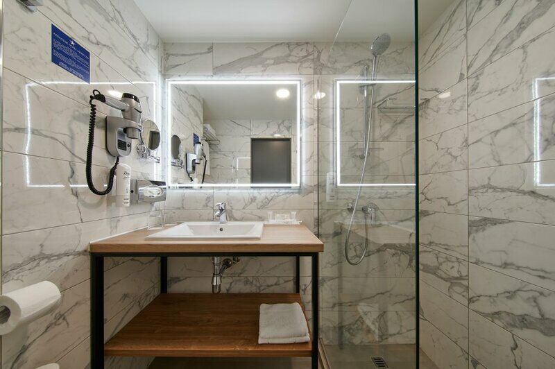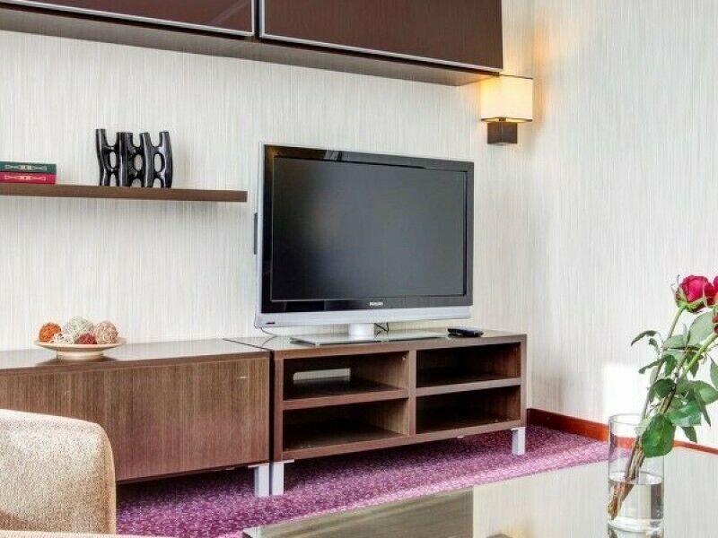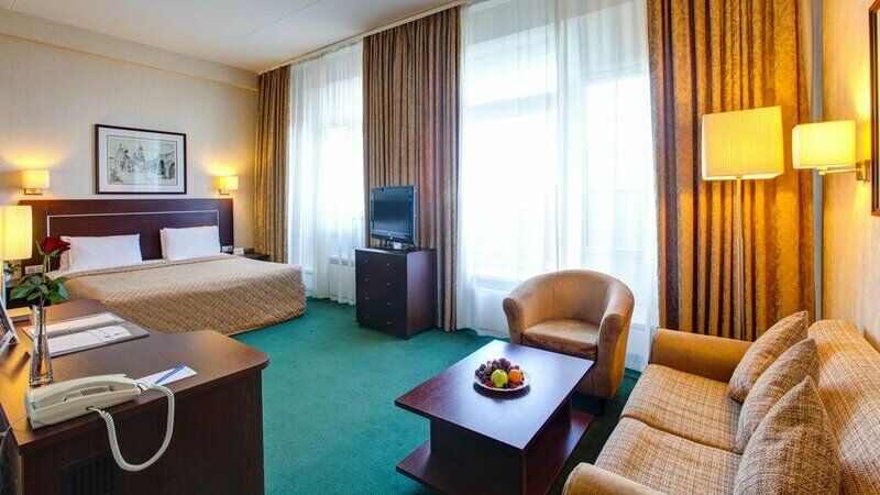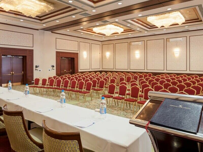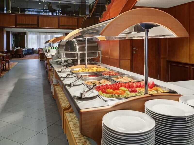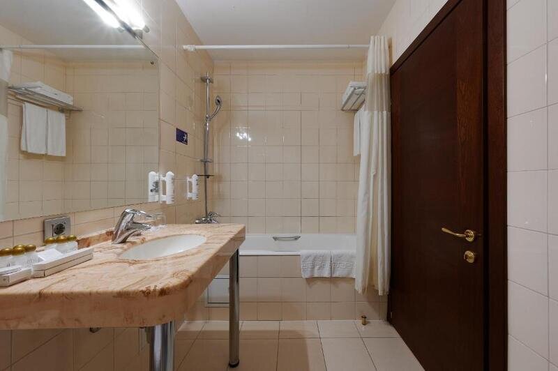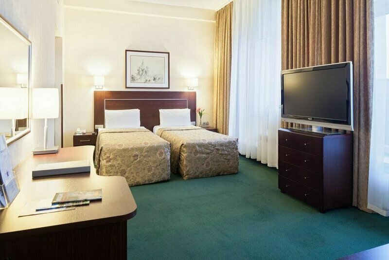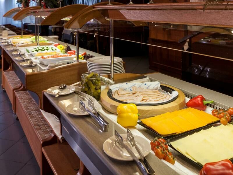 На завтрак гостей приглашаю в ресторан «Брассери» отведать закуски и блюда со шведского стола. На второй этаже находится лобби-бар «Эстрада». Инфраструктура гостиницы включает банкоматы, магазин, фитнес-центр, салон красоты, сауну, конференц-залы, рассчитанные на 15-200 человек.