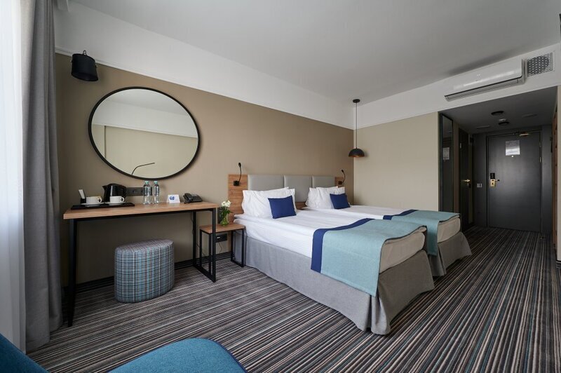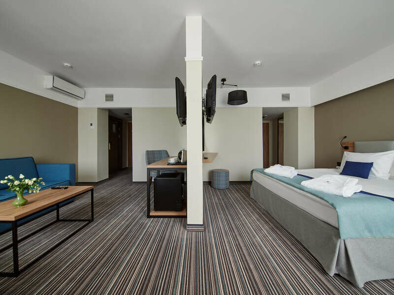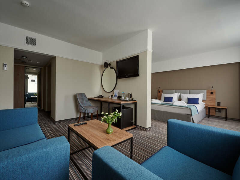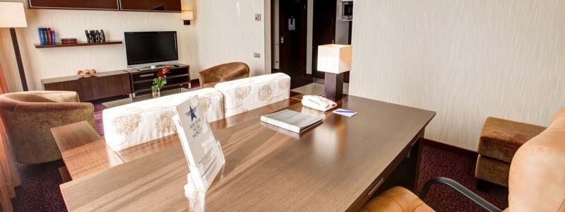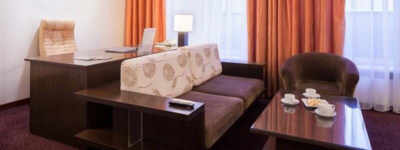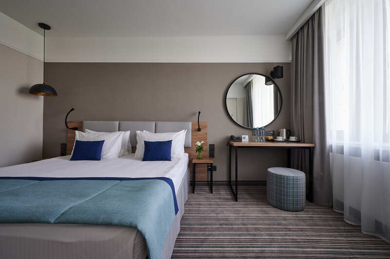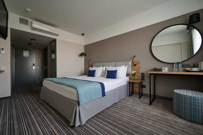 Постояльцам предлагают выбирать номера из Стандартов, Улучшеных, Люксов и Апартаментов. Даже самый бюджетный номер не лишен комфорта и обставлен удобной мебелью, бытовыми приборами, климат-контролем, мини-баром и туалетными принадлежностями в уборной.