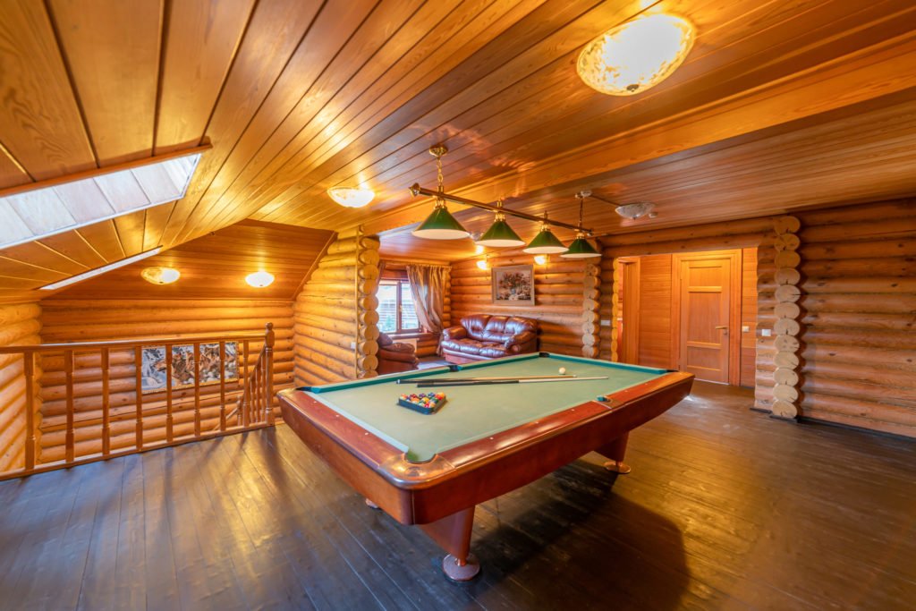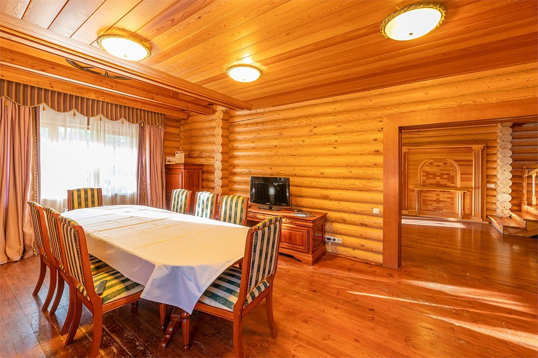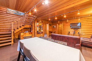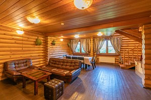 Деревянный 2-х этажный коттедж в Подмосковье для большой компании. Оснащен всем необходимым для комфортного загородного отдыха семьей и компанией: 2-мя гостиными (1-ой — с раскладным диваном и столом на 7 человек), 4-мя спальными комнатами с двухместными кроватями, 3-мя ванными комнатами (2-мя — с душевыми кабинами, 1-ой — с ванной), 1-ой туалетной комнатой, кухней, а также беседкой с зоной барбекю, 4-мя ТВ.
