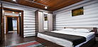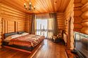 Номер оснащен одной большой кроватью с удобным матрацем, ванной комнатой, гостевой зоной с мягкими креслами. Из больших панорамных окон открывается вид на хвойный лес или на живописную территорию клуба.