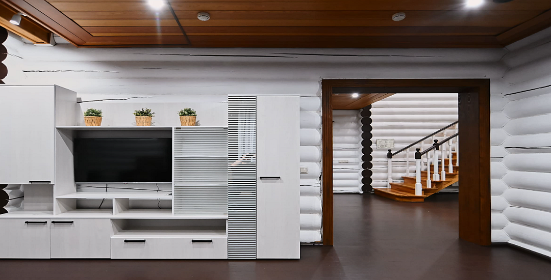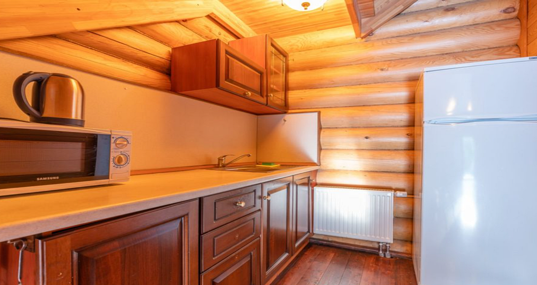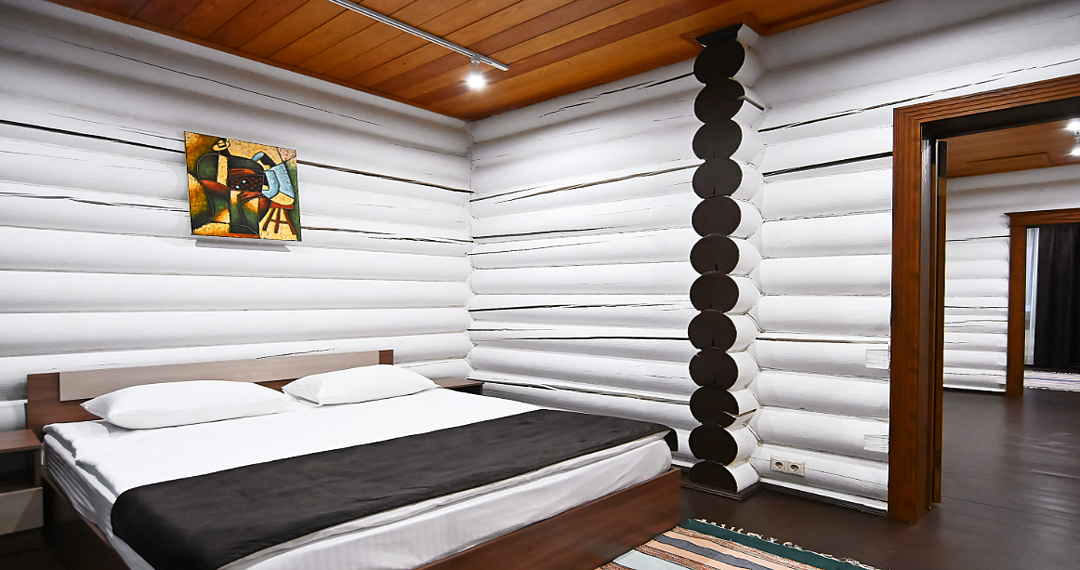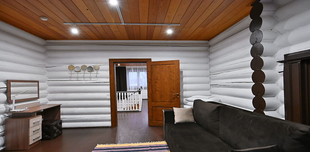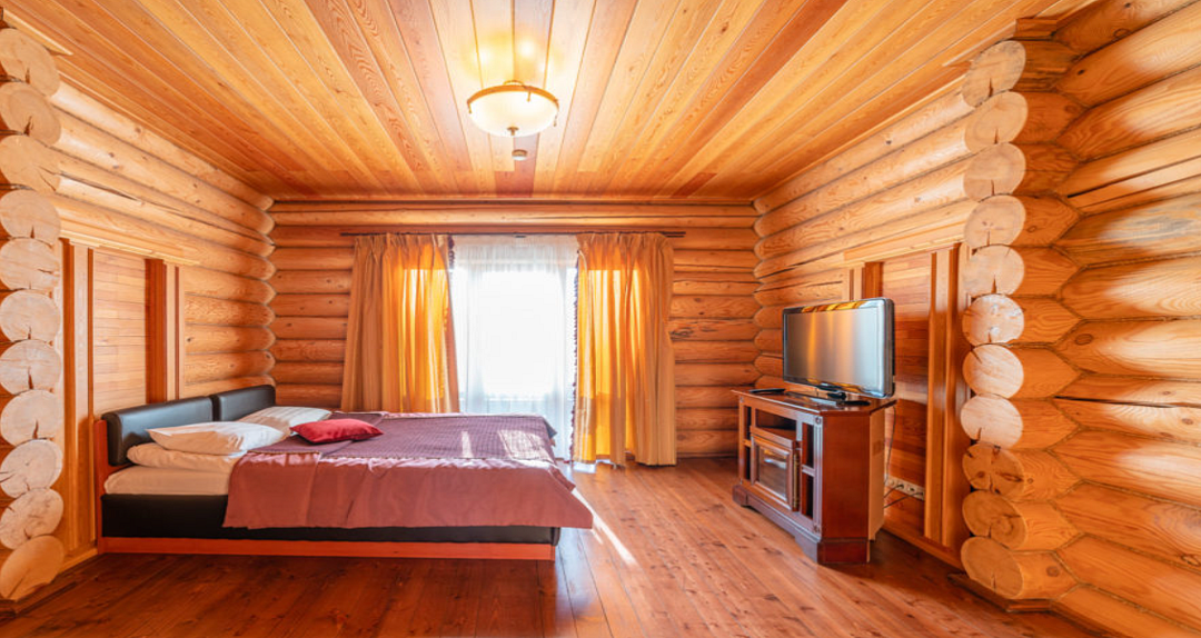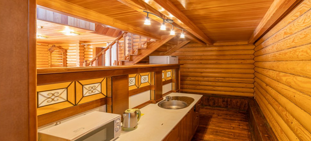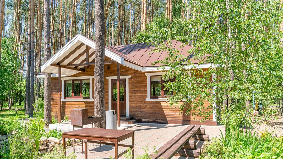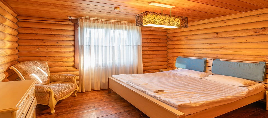 Уютный деревянный домик с камином, где царит теплая и камерная атмосфера. Здесь каждый момент наполняется особым согревающим настроением, создавая пространство для искренних семейных встреч.