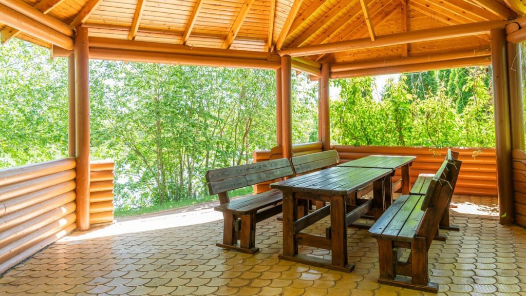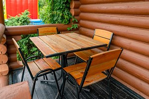 Рядом с каждым коттеджем оборудована зона барбекю с мангалом и садовой мебелью.