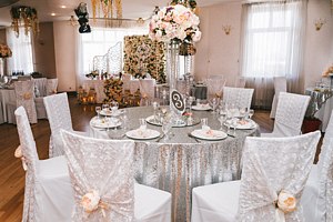 Уютный зал площадью около восемьдесят квадратных метров, оформленный в сдержанных благородных тонах и с продуманным зонированием: выделены общая и танцевальная зоны. Лаконичный интерьер создает атмосферу легкости и изящества.