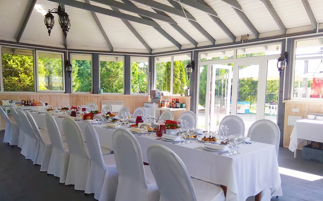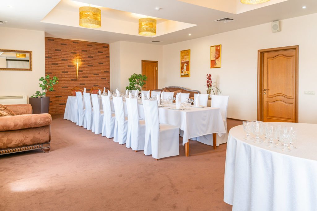 В главном здании клуба раскинулся банкетный зал «Золотой» — изысканное пространство, способное принять до восьмидесяти гостей. Его светлый, классически элегантный интерьер наполняет помещение атмосферой свободы и уюта, создавая идеальные условия для любого торжества.