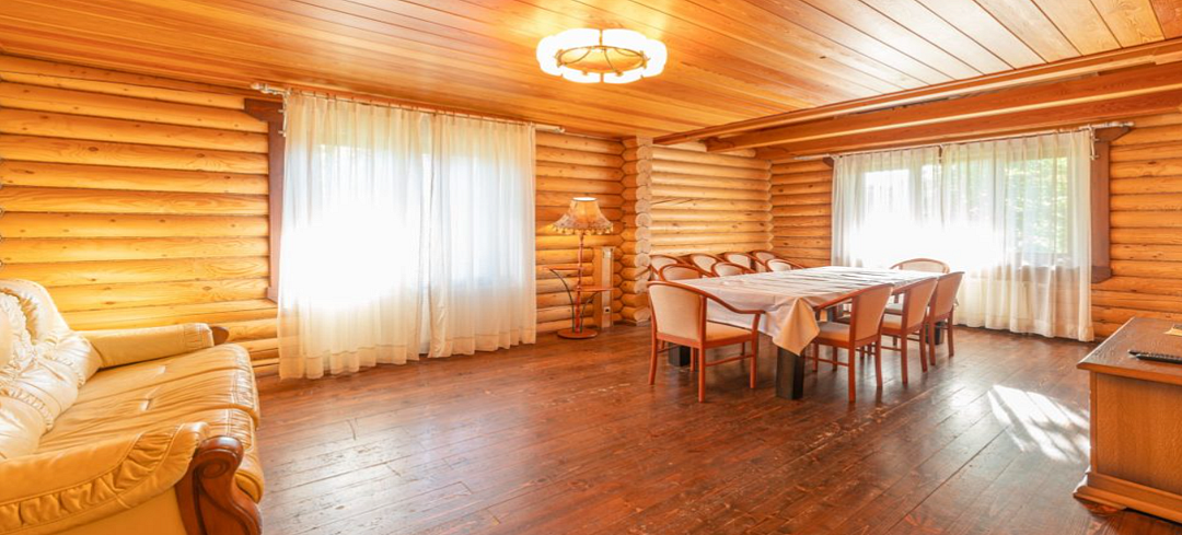 Современный большой деревянный коттедж в Подмосковье для большой компании. Оснащен необходимой мебелью и оборудованием для комфортного загородного отдыха семьей и компанией: 2-мя гостиными (1-ой — с раскладным диваном и столом на 10 человек), 4-мя спальными комнатами с двухместными кроватями, 3-мя ванными комнатами (2-мя — с душевыми кабинами, 1-ой — с ванной), 1-ой туалетной комнатой, кухней, беседкой с зоной барбекю.