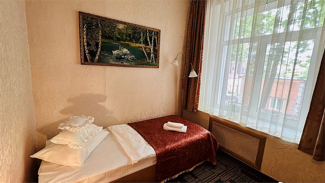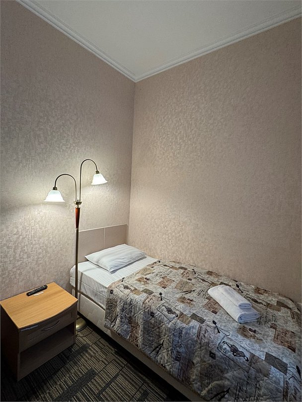 Одноместный номер. Уютный номер с ванной или душевой кабиной. Оборудован всем необходимым для комфортного отдыха и работы. В номере телевизор, чайник, фен. Бесплатная сеть WI-FI. В общем доступе кулер и микроволновая печь.Услуги и удобства