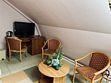 телевизор, фен, вентилятор, обогреватель, ванна или душевая кабина, банные полотенца, тапочки, гигиенические средства, косметические средства, двуспальная кровать, кресла, шкаф для одежды, вешалки, журнальный столик, зеркало, ковер, мебельный гарнитур, чайник, отопление, вид во двор, ламинат, стаканы, туалетный столик, стул, туалетный столик, туалет, внутренний телефон, мансардные окна, номер для некурящих, без питомцевВ гостиничном номере