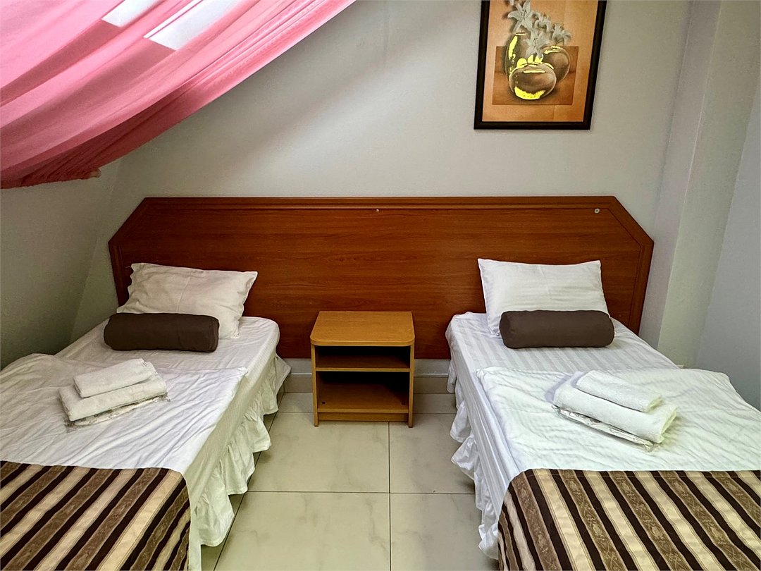 Уютный комфортный Семейный номер идеально подойдет для путешествий с семьей. Номер оборудован всем необходимым, в вашем распоряжении будут три односпальные кровати для комфортного отдыха. Чайник с чайной парой, мини-холодильник и телевизор ЖК, WI-FI.Услуги и удобства